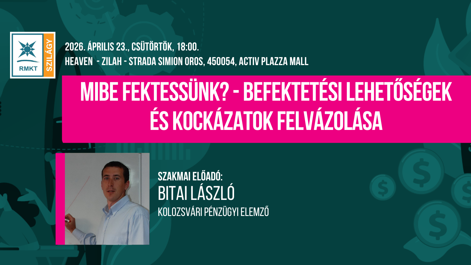 A RMKT következő eseményén egy gyakorlatias szemléletű szakmai előadás keretében járjuk körül a befektetések világát. Az előadás átfogó képet ad a különböző befektetési formákról, azok előnyeiről és kockázatairól, segítve a résztvevőket abban, hogy megalapozott pénzügyi döntéseket hozzanak.